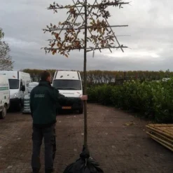 De leibomen met een stamdikte van 10-12cm, begint de leivorm op een hoogte van circa 180cm.