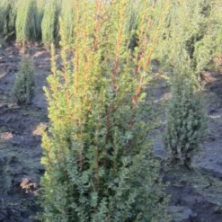 Juniperus communis ‘Arnold’ is een conifeer die traag zuilvormig uitgroeit.