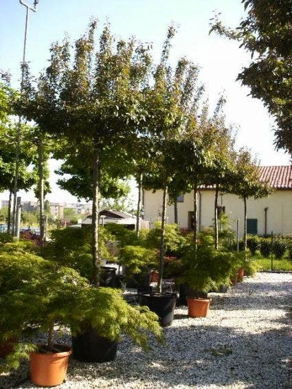 Malus ‘Pofusion’ is een sierappel gekweekt tot dakboom. Malus ‘Pofusion’ krijgt lilarode bloemen in het vroege voorjaar en rode appeltjes in het najaar