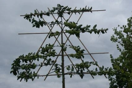 Deze leiboom bloeit zeer rijk in de periode april – mei met witte bloemen.